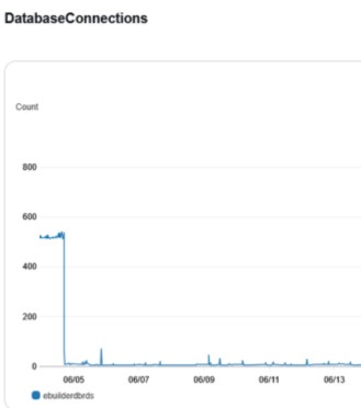 The chart shows the reduction in database connections on a high traffic website after the deployment of eBuilderCMS Build 3.3.43